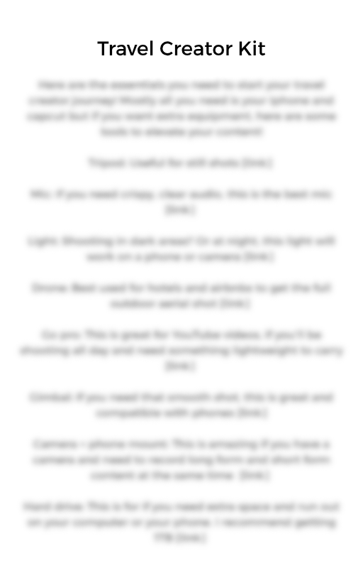 Shop Travel Creator Bundle Sale Price: $47.00 Original Price: $99.00 Sale Purchase Added! Tulum Guide 2025 $20.00 Purchase Added! Custom Tulum Itinerary $45.00 Purchase Added! Moving Abroad Checklist $0.00 Purchase Added! 400+ Poses Guide Sale Price: $75.00 Original Price: $100.00 Sale Purchase Added! How To Pose - 9 Video Tutorials $30.00 Purchase Added! How To Become A Model Guide $0.00 Purchase Added!